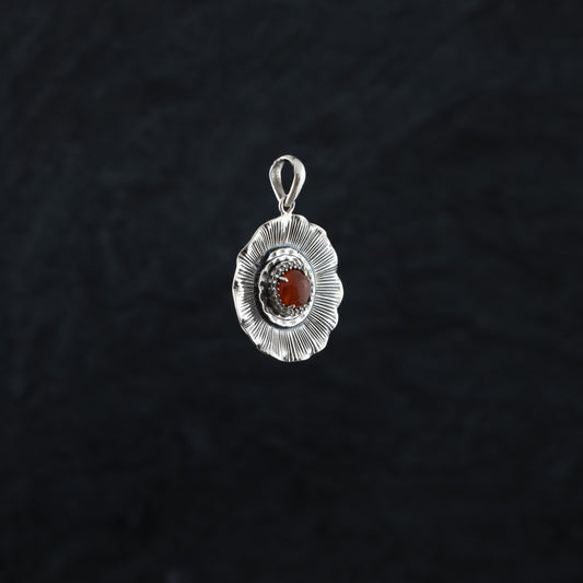 "Fiery Blossom" Silver Pendant with Carnelian