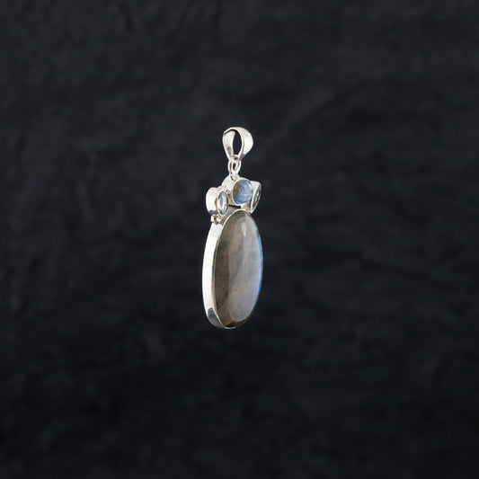 "Fairy Hug" Silver Pendant with Kyanite Crystal labradorite