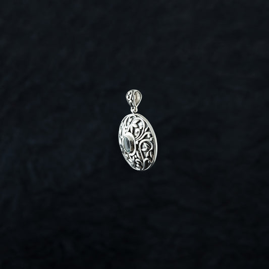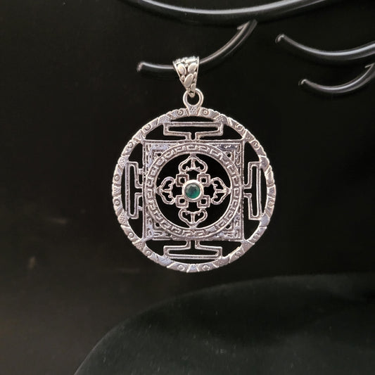 "Intricate Mandala" Silver Pendant with Green Onyx