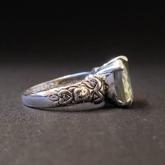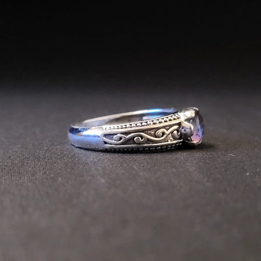 "Leafy Lace" Silver Ring with Amethyst, Cz