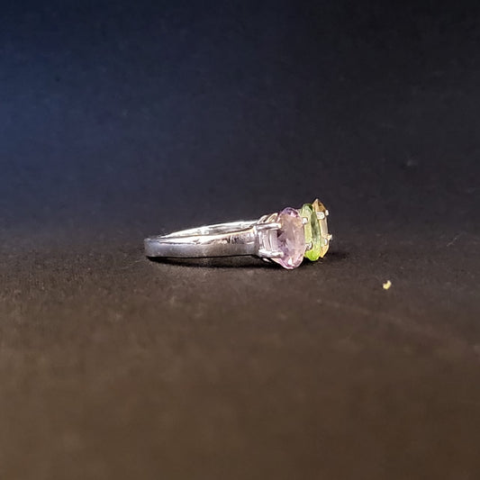"TriPastel" Silver Ring with Amethyst Peridot Citrine